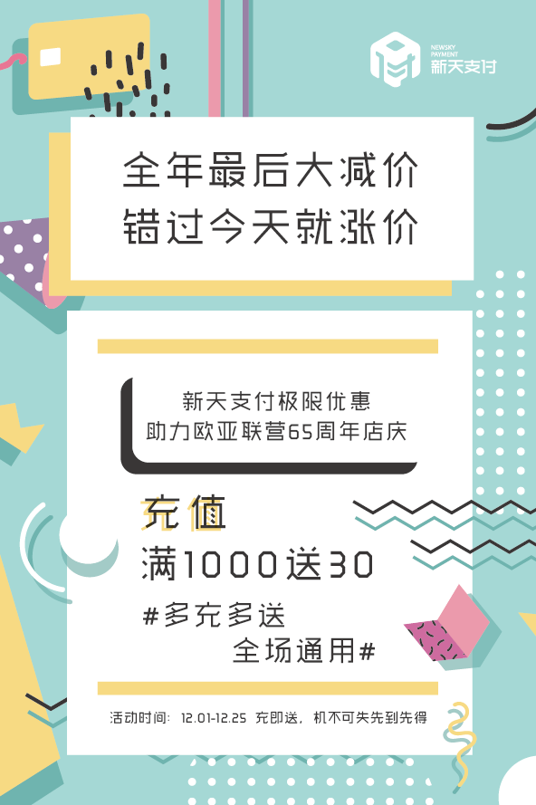 新天支付助力歐亞聯營店慶活動,全場消費,多購多送!